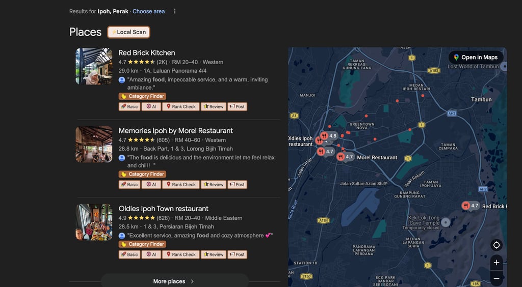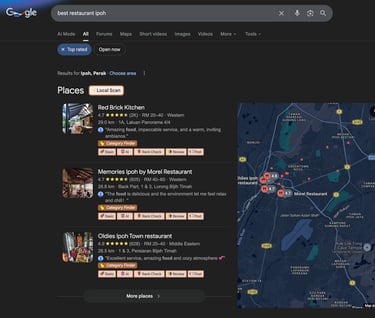 The Issue: Despite having loyal regulars, they struggled to attract new customers from outside the immediate area. When potential diners searched for "Best Malay Restaurant in Bangi" or "Lunch Places in Bangi" on Google, their name was nowhere to be found on the first page or within the Google Maps Top 3.